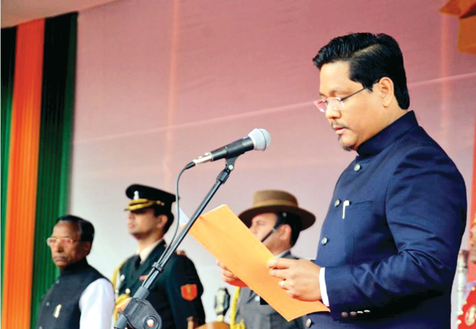 शिलांग : 06 मार्च : अल्फ़ा न्यूज इंडिया ;– नेशनल पीपुल्स पार्टी (एनपीपी) के अध्यक्ष कोनराड कोंगकल संगमा ने आज मेघालय के 12वें मुख्यमंत्री पद की शपथ ली। श्री कोनराड के साथ 11 अन्य विधायकों को नवगठित मेघालय डेमोक्रेटिक गठबंधन सरकार में शामिल किया गया है। जिनमें से एनपीपी के चार, यूनाइटेड डेमोक्रेटिक पार्टी के तीन, पीपुल्स डेमोक्रेटिक फ्रंट के दो के अलावा हिल स्टेट पीपुल्स डेमोक्रेटिक पार्टी (एचएसपीडीपी) और भारतीय जनता पार्टी (भाजपा) के एक-एक विधायक को कैबिनेट मंत्री के रूप में पद और गोपनीयता की शपथ दिलायी गयी। राजभवन के लॉन में समारोह के दौरान केंद्रीय गृह मंत्री राजनाथ सिंह, भाजपा अध्यक्ष अमित शाह, अरुणाचल प्रदेश के मुख्यमंत्री पेमा खांडू, मणिपुर के मुख्यमंत्री एन. बिरेन सिंह, असम के मुख्यमंत्री सर्बानंद सोनोवाल, नागालैंड के मनोनीत मुख्यमंत्री नेफियू रियो, पूर्व मुख्यमंत्री प्यू जोरामथांग और प्रफुल्ल कुमार महंत शामिल हुए। पूर्वोत्तर में भाजपा के रणनीतिकार डॉ. हिमंत बिश्व सरमा भी शपथ ग्रहण समारोह में शामिल हुए। राज्यपाल ने श्री कोनराड को विधानसभा में बहुमत सिद्ध करने के लिए 10 दिन का समय दिया है। श्री संगमा के अलावा शपथ ग्रहण करने वाले मंत्रियों में प्रेस्टन तनसोंग (एनपीपी), जेम्स संगमा (एनपीपी), ए एल हेक (भाजपा), स्नियावभलंग धर (एनपीपी), कोमिंगोन यम्बोन (एनपीपी), मेतबाह लिंगदोह (यूडीपी), लकमेन रम्बुइ (यूडीपी), किरमेन शैला (यूडीपी), बेंटीदोर लिंगदोह(पीडीएफ), हेम्लेट डोहलिंग (पीडीएफ) और सैमलिन मलांगियांग (एचएसपीडीपी) को पद एवं गोपनीयता की शपथ दिलायी गयी।