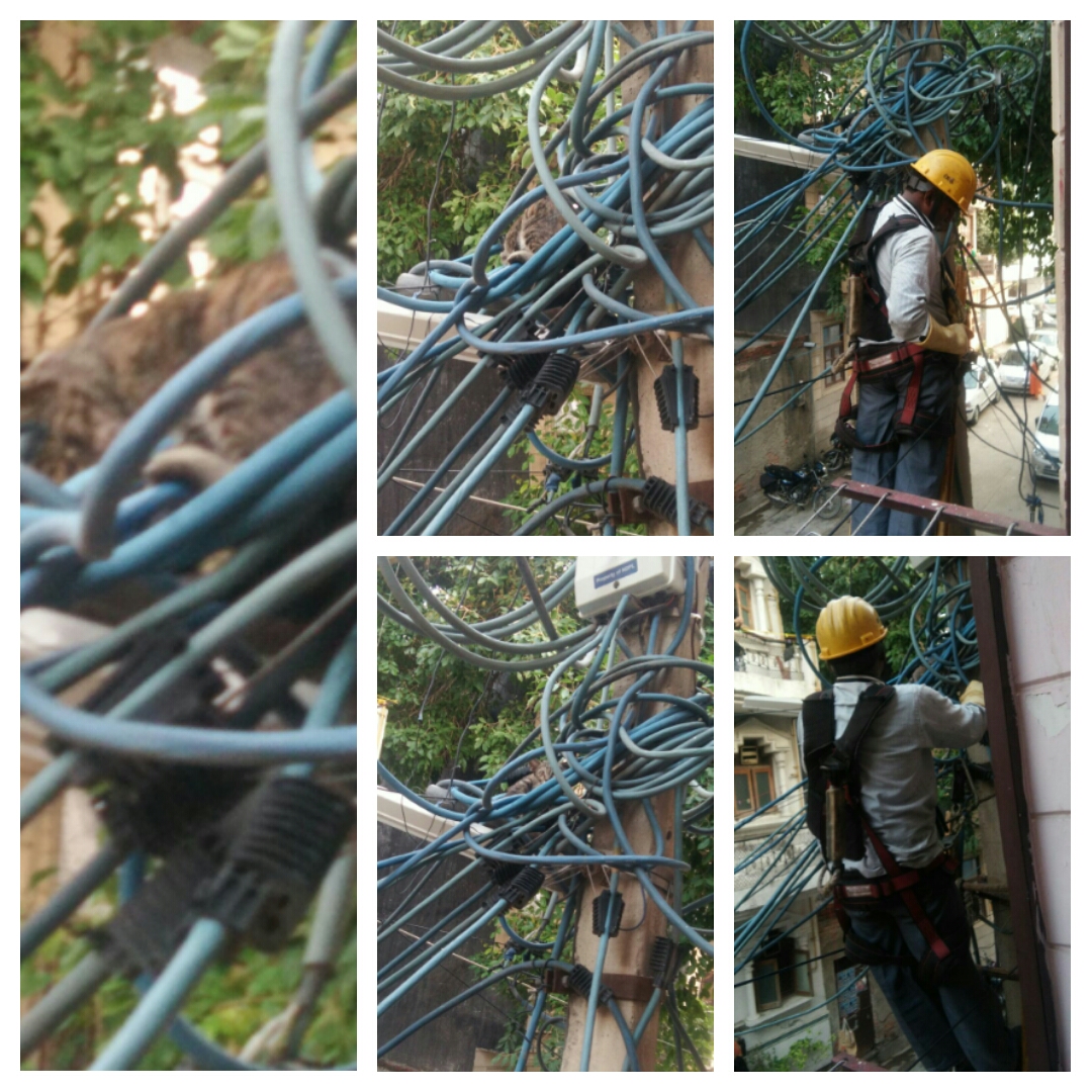 रोहिणी नईदिल्ली : 4 जुलाई : आरके शर्मा विक्रमा /सुमन वैद्द्वान ;——-चिलचिलाती गर्मी में एक क्षण में धुप में खड़े होना मुश्किल हो जाती है वहीँ,सोमवार को एक नन्हा सा बिल्ली का बच्चा एक घर से दूसरे घर में छलांग लगाते हुए खम्बे में लटकाई तारों के बड़े गुच्छे में फंस गया ! घटना नईदिल्ली के रोहिणी के सेक्टर 16 के मकान नंबर E -1 /26–27 के समीपवर्ती बिजली के खम्बे की है ! धुप में दिनभर में तकरीबन 8–9 घंटे बिजली की तारों में फंसे बिल्ली के बच्चे को बिजली वालों ने बड़ी मुशाकत से मुहल्ले वालों के सहयोग से उतारा और उसकी जान बचाई ! स्थानीय निवासी अध्यापिका रेखा दीपक कुमार ने बताया कि शायद बच्चा एक घर से जब दूसरे घर में जाने के लिए कूदा तो लम्बी छलांग लगाने ने नाकाम रहा और साथ के खम्बे पर बने बिजली के तारों के बड़े गुच्छे में जा फंसा ! ये वकयात सवेरे तकरीबन साढ़े सात बजे के आसपास का है ! बाद में उसके रोने की आवाज से मुहल्लेवासी एकत्रित हुए और लाठियों से उसे उतारने की नाकाम कोशिशे कीं ! फिर धुप तेज होने की बजह से अपने अपने घरों में जा घुसे ! बिल्ली का बच्चा दिन भर कड़कती धुप में यहीं फंसा टंगा रहा और राहत और मदद के लिए रोता रहा ! शाम को तकरीबन छह बजे बिजली विभाग को सूचित किया तो बिजली विभाग के कर्मी आये तो बाकायदा सेफ्टी हेलमेट और बेल्ट लगाकर खम्बे पर चढ़े ! और खूब मेहनत करके बिल्ली के बच्चे को बचाया ! बिजली वालों की सभी ने प्रशंसा की और दुआएं दीं !