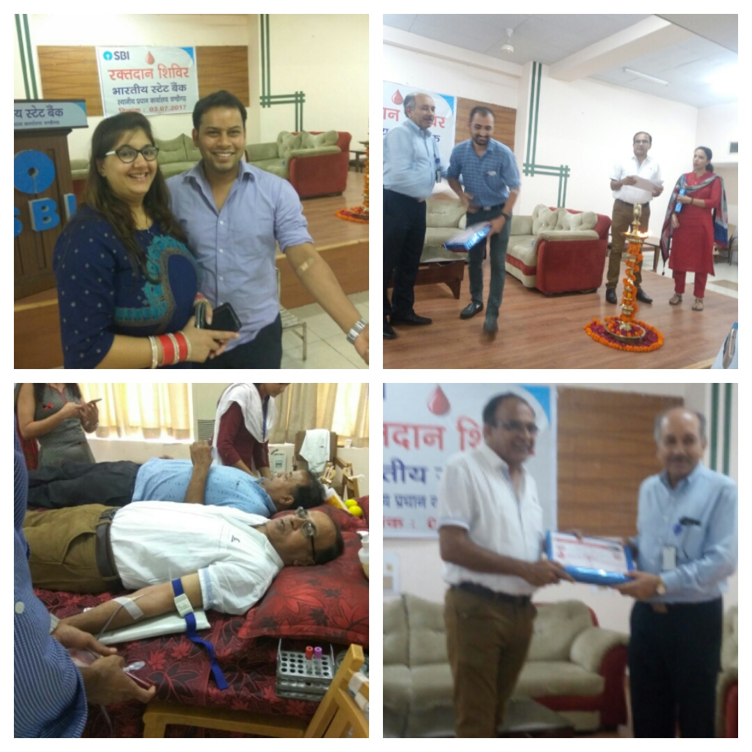 चंडीगढ़ ; 3 जुलाई; आरके शर्मा विक्रमा /एनके धीमान ;—–सोहनी सिटी के हार्ट कहे जाने वाले सेक्टर 17 स्थित भारतीय स्टेट बैंक के जोनल मुख्यालय के सभागार में एसबीआई के स्थापना दिवस के उपलक्ष्य में आज एक स्वैच्छिक रक्तदान शिविर का आयोजन किया गया ! आयोजक मंडल में अग्रणी पवन कुमार मदान और जनसम्पर्क अधिकारी मिस्टर कपूर सहित अशोक कुमार शर्मा के मुताबिक उक्त रक्तदान शिविर में 160 महिला पुरुषों ने स्वैच्छा से रक्तदान महादान महायज्ञ में योगदान की आहुति डाली ! बैंक के अनेकों शीर्ष अधिकारी भी रक्तदान शिविर के समापन होने तक उपस्थित रहे ! बैंक के मुख्य महाप्रबन्धक अनिल किशोरा और उनकी धर्मपत्नी [फर्स्ट लेडी ] ने सभी रक्तदानियों को प्रशंसा पत्र और उपहार देकर सम्मानित और प्रोत्साहित किया ! आज उक्त रक्तदान शिविर में एक नवविवाहित जोड़े ने एक साथ रक्तदान किया और इसे जीवन का अविस्मरणीय यादगर योगदान भी कहा ! अपने प्रोत्साहन संदेश में एसबीआई के सीजीएम अनिल किशोरा ने युवा रक्तदानियों को दूसरे के प्राण बचाने के लिए अतुल्य दान रक्तदान करने की महत्ता बताते हुए खूब प्रेरित भी किया ! बैंक के अन्य कई सहयोगी यूनिटों से भी रक्तदानी खूब उत्साह से उमड़े और रक्तदान के महाकुम्भ में अपना अपना योगदान दिया ! सभी रक्तदनियों के लिए अंडे फल दूध और जूस आदि का व्यापक प्रबंध सराहनीय रहा !