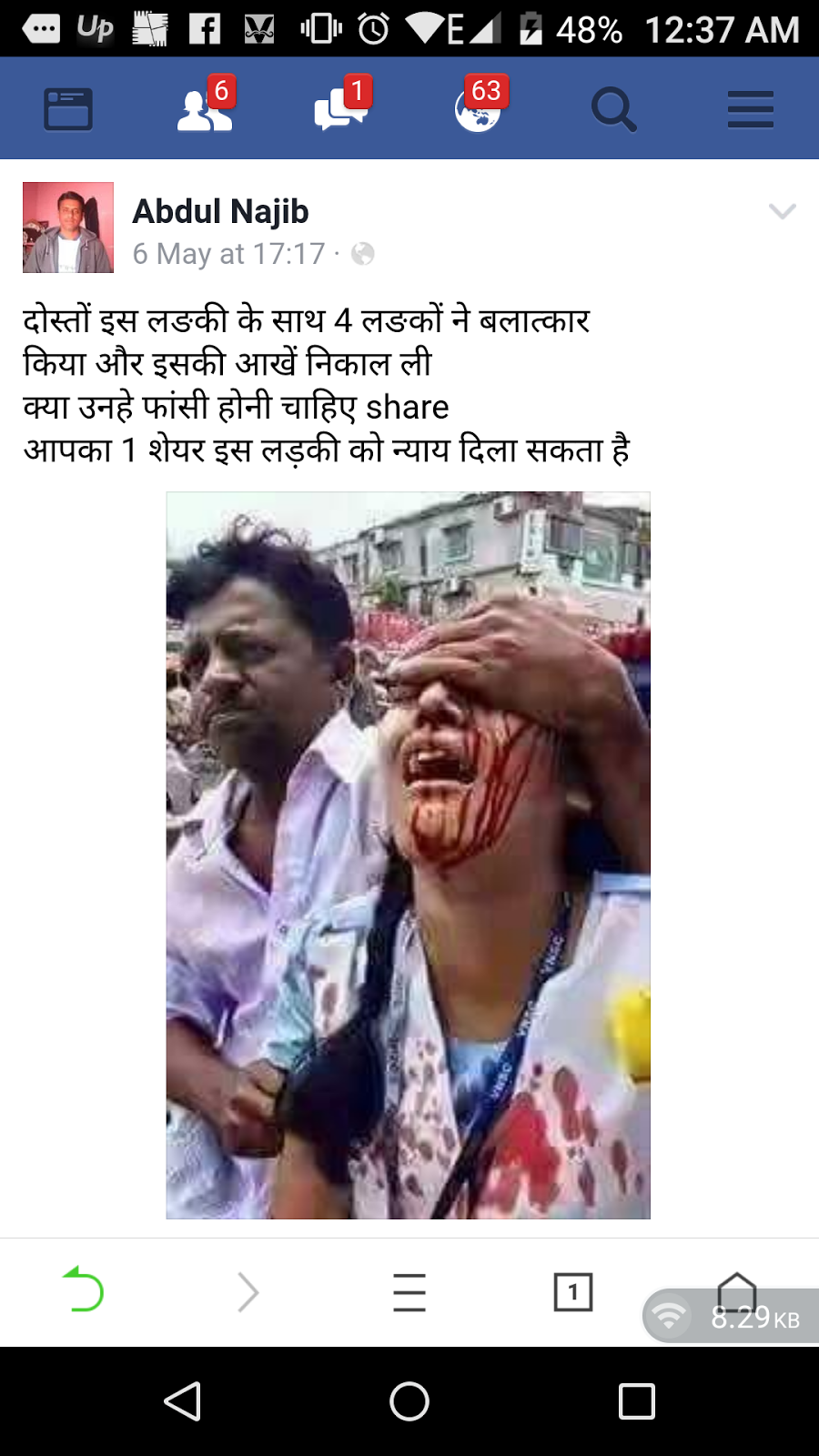 चंडीगढ़ ; 9 मई ; आरके विक्रमा शर्मा/एनके धीमान /करणशर्मा /राहुल मेहता ;——आज आधुनकिता की आड़ में और अवसरवादिता की ताड़ में मीडिया भी अपनी मर्यादा पालना का मोह तज ही रहा है ! धनलोलुपता के अंधे दौर में सबसे ज्यादा प्रभावित और परिष्कृत होने वालों में सोशल मीडिया का सानी नहीं है ! जहां सिक्के के दो पहलू होते ठीक वैसे ही मीडिया भी दो धाराओं में बह रहा है ! अब भले ही इन धाराओं से कुकुरमुत्तों की भांति उग आये कथित मीडिया के पालनहारों का दूर दूर तक कोई राफ्ता न हो ! पर इनकी पत्रकारिता सब के मुंह बंद करती और अपनी दकियानूसी व् अनुभवहीनता भरी परिपक्क्वता का लोहा मनबना इसने कोई बखूबी सीखे! सोशल मीडिया ने नेगेटिव अप्रोच को लेकर अपनी सीमाएं खुद ही लाँघ ली हैं ! और तो और सोशल मीडिया कई दशकों से विकसित हो रहे प्रिंट और इलेक्ट्रॉनिक्स मीडिया को भी मात देते हुए अनेकों बार लात भी खा चुके हैं ! जरूरत है गरिमामयी सृजना की इतहास की घंटना से ग़म्भीरता पूर्वक ज्ञान अर्जित किया जा सके ! कुछेक दिवस पूर्व ही फेसबुक पर किसी ने एक नाबालिग लड़की जो खून से लथपथ थी और एक सज्जन उसको सहारे दिए खड़े थे ! जोकि पीड़िता का पिता तुल्य जान पड रहा था ! हैदराबाद के किसी एफबी यूजर अब्दुल नजीब से ये अम्बाला के कौशल किशोर ने शेयर किया था !फोटो के साथ लिखे मैटर मुताबिक उक्त लड़की के साथ चार लड़कों ने रेप किया और उसकी दोनों आँखें भी निकाल दी थीं ताकि कभी भविष्य में उनकी शिनाख्त ही न कर पाए ! अब ये घटना कब कहाँ कैसे घटित हुई इसके बारे में किसी ने भी खुद के आधार पर कोई जेहमत तक न उठाई ! इसी हफ्ते एक और वायरल वीडियो के मुताबिक एक अर्धनग्न बलिष्ठ कथित तौर पर भारतीय जवान को पाकिस्तान के नपुंसक जवान कुल्हाड़ी से काट रहे हैं ! तड़पते हुए भारतीय फौजी काफी वक़्त के बाद प्राणों से मुक्ति पता है ! उसकी गर्दन काटने के बाद खोपड़ी में बाकि के पाक जवान गोलियों से आरपार छेद करते हैं ! ये घटना किसी घर के अंदर की है ! दरवाजे पर पर्दे लटक रहे हैं और नपुंसकों की तादाद तकरीबन आध दर्जन तो है ! भारतीय जवान की गर्दन आधी काटे जाने पर खूब खून बहता है और शरीर में हिलजुल होने से पता लगता है किउसको जिन्दा काबू करके तरसा तरसा के खूब देर तक तड़पा के मौत के घाट उतारा गया ! भारत माता के वीर जवान के हाथ कमर पर बंधे हुए थे ! उसका शरीर देखकर लगता था कि सूरमा अकेले ही इन सब भीरुओं पर भारी पड़ने में समर्थ था ! आखिर सवाल पहला पैदा ये होता कि क्या ये वीडियो सच है ये फेक है ? दूसरा, अगर ये सच है तो सोशल मीडिया के पास कैसे आई और कब किस जगह इस जवान को बुरी मौत मारा गया ! भारतीय जनता मौजूदा सरकार से इंसाफ चाहती है ! कब तक जवानों की गर्दनें कटवाते रहेंगे ! कब तक सियासी रोटियां सेंकने के लिए जवानों की बोटियाँ बोट