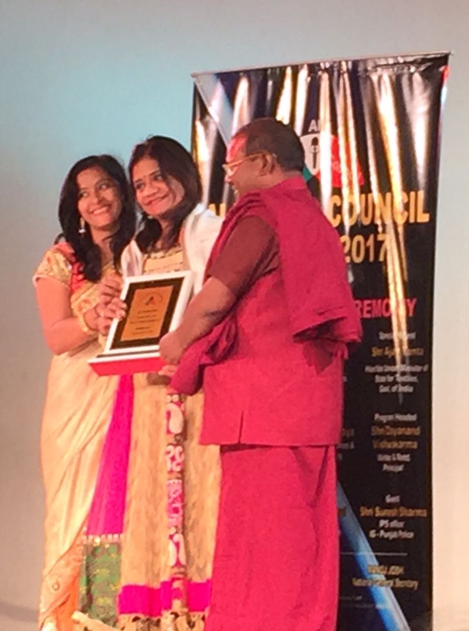 नईदिल्ली /चंडीगढ़ ; 6 मार्च ; सुमन वैदवाला/आरके विक्रमा शर्मा ;——नईदिल्ली के इंद्रप्रस्थ एस्टेट स्थित आई सीसीआर आजाद भवन में आयोजित भव्य कार्यक्रम में सोशल एंड ह्यूमन राइट्स एक्टिविस्ट व् लेक्चरार सहित राइटर एंड एडवोकेट के नाम से जानी पहचानी जाती सोनल जोशी को आल मीडिया काउन्सिल अवार्ड 2017 के तहत ज्यूडिशियरी कैटेगरी में हेतु अलंकृत किया गया ! उक्त नॉमिनेशन की उपलब्धि के लिए उनका मान सम्मान बढ़ने पर उनको बधाइयां देने वालों में समाज के हर वर्ग के लोगों का ताँता लगा है ! बहुमुखी प्रतिभा की धनी सोनल समाज के विविध स्वरूपों की अथक सेवा करती है और निस्वार्थभाव से अपनी सेवा यात्रा अक्षुण जारी रखे हुए है ! समाज के अनेकों वर्गों ने उनका समय समय पर उत्साहजनक सम्मान समारोह आयोजित करके उनको पुरस्कृत और सम्मानित किया ! उनके हिस्से नेक नियति भरी उपलब्धियों की लम्बी फेहरिस्त काबिले तारीफ है !