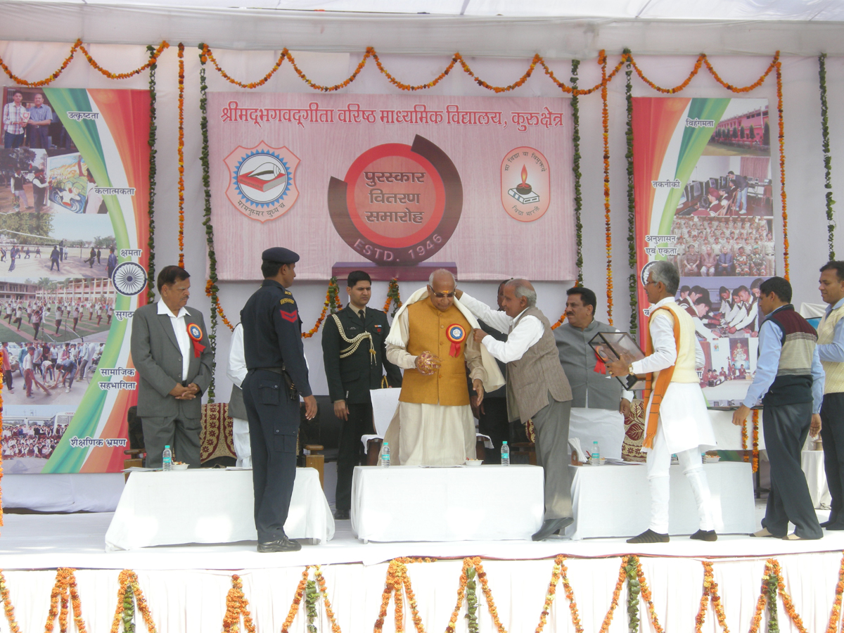 राज्यपाल प्रोफेसर कप्तान सिंह सोलंकी मंगलवार को श्री मदभगवद गीता वरिष्ठ माध्यमिक विद्यालय स्कूल के वार्षिक पुरस्कार वितरण समारोह में बोल रहे थे। इससे पहले राज्यपाल प्रोफेसर कप्तान सिंह सोलंकी, विद्या भारती के सरंक्षक ब्रह्मदेव भाई जी, विधायक सुभाष सुधा ने 6 करोड़ 50 लाख की लागत से बने मधुकर भवन के भूतल का लोकार्पण करने के उपरांत यज्ञ में आहुति डाली औैर दीप शिखा प्रज्ज्वलित कर विधिवत रूप से वार्षिक पुरस्कार वितरण समारोह का शुभारंभ किया। इस दौरान स्कूल के विद्यार्थियों के रंगारंग सांस्कृतिक कार्यक्रमों से मंत्रमुग्ध होकर राज्यपाल ने करीब 150 विद्यार्थियों को 2 हजार प्रति छात्र के हिसाब से 3 लाख रुपए तथा मधुकर भवन केआगामी तल का निर्माण कार्य के लिए 1 करोड़ रुपए देने की घोषणा भी की ।
