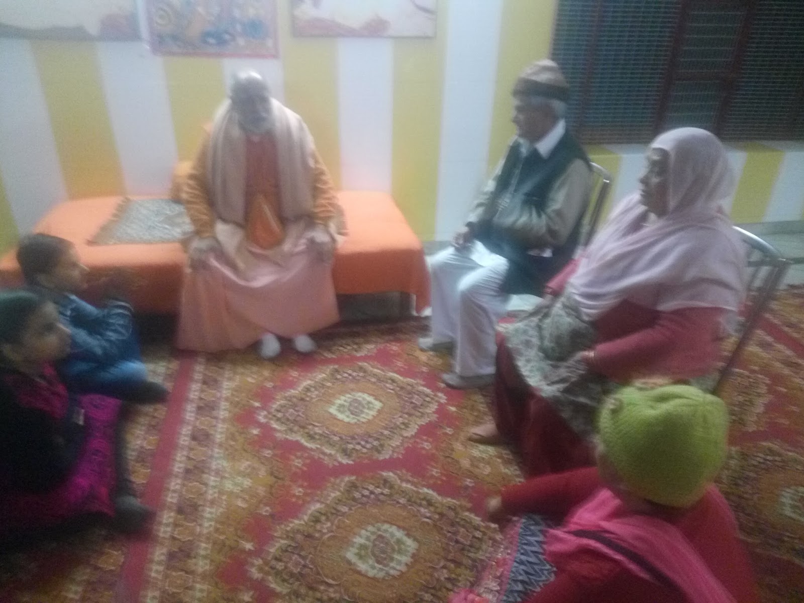 {दादा दादी जी व् मातपिता सहित गुरुवर के पावन सान्निध्य में बैठ कर बच्चे संस्कारों का पाठ धर्मज्ञ पण्डित रामकृष्ण शर्मा जी से श्रवण करते हुए}———>