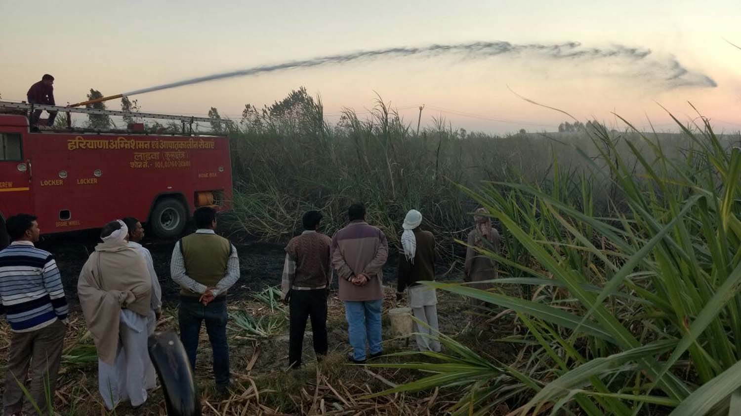 बाबैन /कुरुक्षेत्र : 28 नवम्बर : अल्फा न्यूज इंडिया /राकेश शर्मा : गांव झंडौला में रविवार सांझ को बिजली की तारों से निकली चिंगारी से बाबैन गांव झंडौला के निवासी रमेश शर्मा की 2 एकड गन्ने की फसल देखते ही देखते जलकर राख हो गई। आग लगने के बाद गांव के लोगों ने आग पर काबू पाने की बहुत मुशाकत की ! लेकिन आग बुझाने में कोई कामयाबी नहीं मिली। बाद में फायर बिग्रेड की एक टेंडर मौके पर पहुंची !और कडी मुशक्त के बाद आग पर काबू पाया। आग लगने से गन्ने की फसल जलने पर लाखों रूपए का नुक्सान हुआ ! रमेश शर्मा ने बताया कि दोपहर बाद लगभग 4 बजे शार्ट सर्किट के कारण बिजली की तार टूटकर खेत में आ गिरी ! और उठी चिंगारी से गन्ने के खेत में आग लग गई। आग लगने से उसक ी 2 एकड गन्ने की फसल जलकर राख हो गई। ग्रामीणों ने आग को आगे बढने से रोका नहीं तो और अधिक नुक्सान हो सकता था !