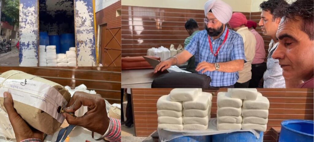 चंडीगढ़ 11.06.2025 आरके विक्रमा हरीश शर्मा अनिल शारदा प्रस्तुति— खाद्य सुरक्षा टीम का निरीक्षण कार्यवाही में 450 किलो पनीर सहित कई नमूने भरकर जांच के लिए भेजे. चंडीगढ़ प्रशासन द्वारा मिलावटी खाद्य पदार्थों के खिलाफ कड़ी कार्रवाई करते हुए आज सुबह सेक्टर-26 स्थित बापूधाम कॉलोनी में स्वास्थ्य विभाग की फूड सेफ्टी टीम ने अचानक छापा मारा। कार्रवाई के दौरान मकान नंबर 714/2 और उसके बाहर खड़ी एक पिकअप वैन से लगभग 450 किलोग्राम पनीर बरामद किया गया। इसके साथ ही देसी घी और दही के नमूने भी जब्त किए गए. जिन्हें एफएसएसएआई से मान्यता प्राप्त प्रयोगशाला में जांच के लिए भेजा गया है। सिटी ब्यूटीफुल में विभाग की टीम की य़ह कार्यवाही लम्बे समय बाद देखी गयी है.
