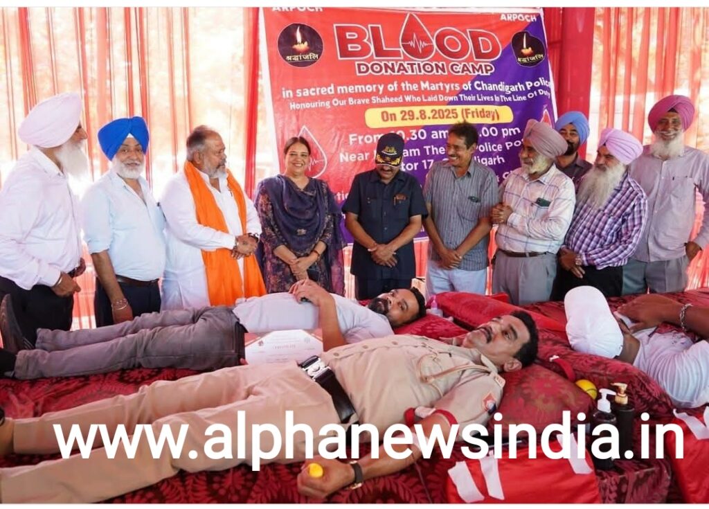 चंडीगढ़ 29 अगस्त 2025 आरके विक्रमा शर्मा अनिल शारदा रक्षत शर्मा —— चंडीगढ़ पुलिस के अमर शहीद जवानों की याद में एसोशिएशन आफ रिटायर्ड पुलिस ऑफिसर्स ऑफ़ चंडीगढ़ पुलिस द्वारा श्री शिव कावड़ महासंघ चैरिटेबल ट्रस्ट, पंचकूला, निफा चंडीगढ़, महामाई मनसा देवी चैरिटेबल भंडारा कमेटी, रक्तवीर ग्रुप चंडीगढ़ पुलिस, रोटरी क्लब चंडीगढ़ सेंट्रल एवं ब्लड बैंक, जीएमसीएच, सेक्टर 32 चंडीगढ़ के सहयोग से सेक्टर 17 चंडीगढ़ में रक्तदान शिविर लगाया गया।