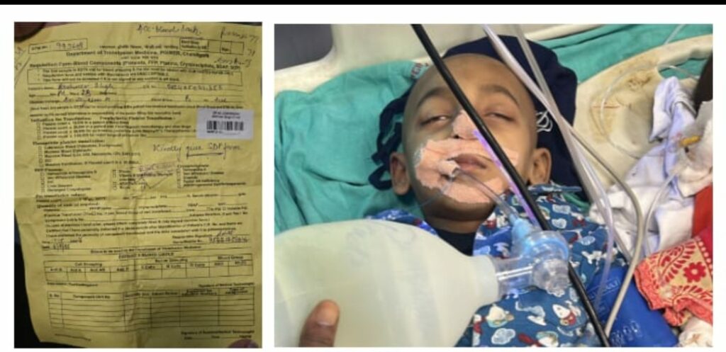 चंडीगढ़ 3 सितंबर 2025 आरके विक्रमा शर्मा हरीश शर्मा अनिल शारदा रक्षत शर्मा —– चंडीगढ के वीर साहसी रक्त दानवीर सज्जनों से अल्फा न्यूज़ इंडिया की एक बार फिर पुरजोर गुहार है कि पीजीआई में एक नन्हा बच्चा बहुत ही नाजुक स्थिति में अपने जीवन के लिए जंग लड़ रहा है। इस बच्चे को +B (बी पाज़ीटिव) ब्लड की सख्त जरूरत है चंडीगढ़ शहर दयालू मददगारों का शहर है। और आपने हर समय इस बात को सिद्ध करने में कभी कोई विलंब नहीं किया है। बी पॉजिटिव ब्लड डोनर तुरंत संपर्क करें। और पीजीआई सेक्टर 12 तुरंत पहुंचकर बच्चे को रक्त उपलब्ध करवाएं। अल्फा न्यूज़ इंडिया के कार्यालय मोबाइल नंबर 9872 886 540 व्हाट्सएप और कॉलिंग पर संपर्क करें।। या बच्चे के अभिभावक मनप्रीत सिंह खालसा से 7986632215 मोबाइल नंबर पर संपर्क करें।। हमारी अल्फा न्यूज़ इंडिया की हाथ जोड़कर विनती है कि हमारे रक्त वीर साथियों ने जैसे पहले बिना किसी प्रकार की देरी किए जरूरतमंद मरीजों को खून दान किया है। और निस्वार्थ भाव से जीवन दान दिया है। एक बार फिर आगे आएं और जरुरतमंद इस प्यारे से मां बाप के राज दुलारे बच्चे के लिए मददगार मसीहा बन जाइए।