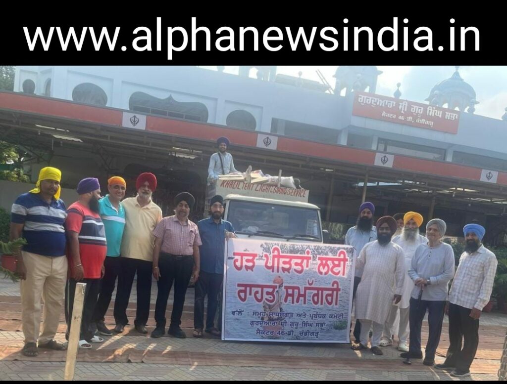 चंडीगढ़ 12 सितंबर 2025 आरके शर्मा विक्रम रक्षा शर्मा अनिल शारदा—-उत्तरी भारत का हर प्रांत बाढ़ की मार झेल रहा है हिमाचल प्रदेश उत्तराखंड जम्मू-कश्मीर पंजाब राजस्थान और हरियाणा भी इसकी चपेट में हैं। इन बरसाती कहरों ने बर्बादी का तांडव नाचा। अनगिनत मवेशी और जान माल का भारी नुकसान हुआ। जानी नुकसानकी भरपाई कभी भी नहीं हो सकती है। लोगोंके घर खेत खलिहान मवेशी सब पानी में डूबे हुए हैं। ऐसे में खानेको रोटी पीने का पानी बस्तर और बिस्तर सर ढंकने को ट्रिपल और महिलाओंको बुनियादी जरूरत के सामान की भारी मांगके चलते गलत है। देश विदेशों से मददगारों और केंद्रीय सरकार राज्यसरकार के खजाने से मदद की जा रही है। पंजाब के लोगों के लिए बेशुमार हरप्रकार की मदद आ रही है। चंडीगढ़ सेक्टर 46 स्थित गुरुद्वारा के संगत समाजने बाढ़पीड़ितों के लिए बुनियादी जरूरत का सामान दवाइयां रसद आदि भेजी है। संगतने वादा दोहराया है कि बाढ़ पीड़ितों को कोई किसी प्रकार की कमी नहीं रहने दी जाएगी। जब जब जरूरी सामान की मांग आएगी संगत तुरंत पूरा करेगी।