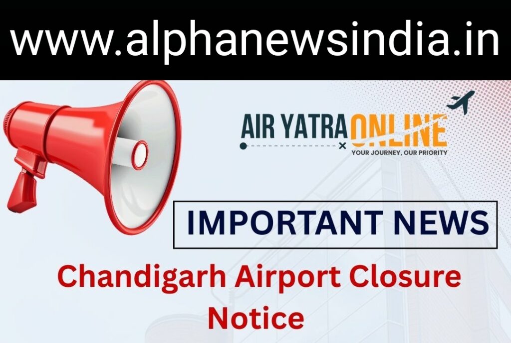 एयर यात्रा ऑनलाइन आपकी यात्रा, हमारी प्राथमिकता।। चंडीगढ़ 29 सितंबर 2025 आर विक्रमा शर्मा अनिल शारदा प्रस्तुति -* स्थानीय चंडीगढ़ हवाई अड्डा सभी फिक्स्ड-विंग उड़ानों के लिए बंद रहेगा। :27 अक्टूबर 2025 से लेकर 07 नवंबर, 2025 तक सभी निर्धारित उड़ानें रद्द रहेंगी।। यात्रियों को सलाह दी जाती है कि वे वैकल्पिक व्यवस्था करें और अपनी यात्रा की योजना तदनुसार बनाएँ।अधिक जानकारी के लिए यहां संपर्क करें:-01724560620 | 8289099298 |9914389549.