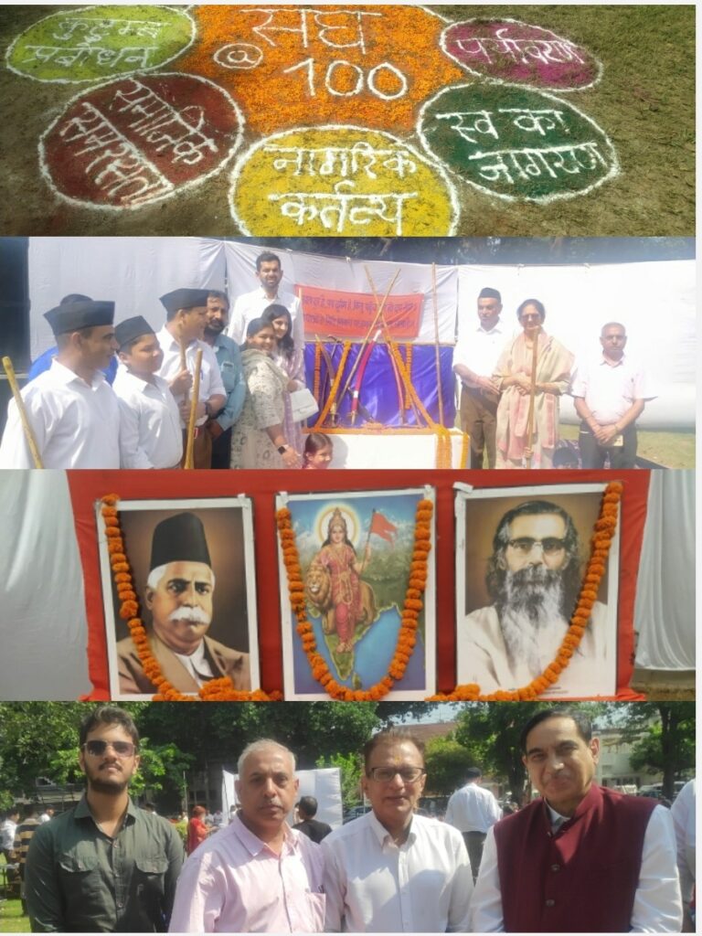 चंडीगढ़ 5 अक्टूबर 20 25 आरके विक्रमा शर्मा रक्षत शर्मा अनिल शारदा —- भारतवर्ष ने 75 में स्वाधीनता वर्षगांठ मनाई तो इसी कड़ी में राष्ट्रीय स्वयंसेवक संघ ने अपनी स्थापना की शतक वर्षगांठ बना रहा है पूरी दुनिया में राष्ट्रीय सयंसेवक संघ सबसे बड़ी मानवीय इकाई मानवीय कार्यों क बनी इकाई है। यही कारण है कि इसके सदस्य सिर्फ सनातनी हिंदू ही नहीं बल्कि दुनिया के हर धर्म मात्र संप्रदाय मत मसब पंथ के लोग सदस्य हैं आरएसएस मानव को मानव से जोड़ती है। व्यक्तिगत विकास से ऊपर उठकर सम्पूर्ण समग्र व्यक्तित्व विकास ही ध्येय है। बिना भेदभाव और पक्षपात के मानव जाति के बुनियादी विकास की कहानी लिखने में राष्ट्रीय स्वयंसेवक संघ पहला और आखिरी संघ है दुनिया में इसका कोई सानी नहीं है। आरएसएस के व्यक्तित्व विकास के यात्री आज दुनिया के कोनी-कोनी में उच्चतम पदों पर असिन है और यही इसकी नींव रखने की अनिवार्यता के परिचायक हैं। स्वाधीन भारत से स्वतंत्र भारत की यात्रा की शुरुआत है। परिवार प्रबोधन सामाजिक समरसता पर्यावरण नागरिक कर्तव्य और मेड इन इंडिया मेड बाय इंडियन का अध्याय लेकर रस को चलना है और सबको साथ लेकर चलता है यही इसकी सार्वभौमिक विकास-यात्रा है।