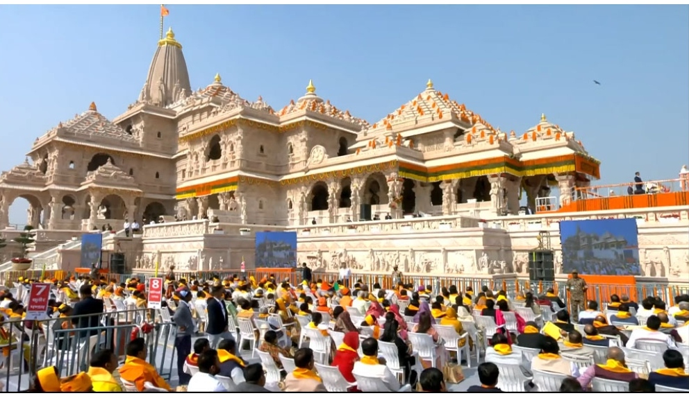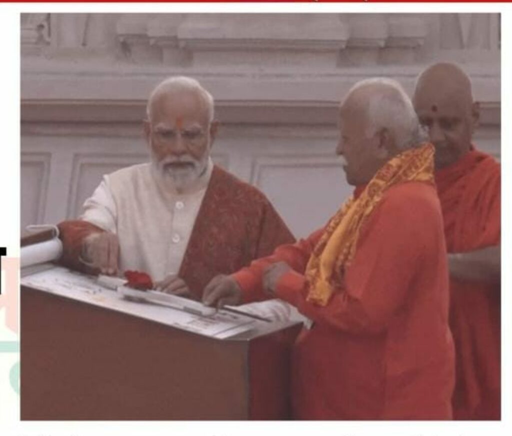 चंडीगढ़ गाजियाबाद 25 नवंबर 2025 आरके विक्रमा शर्मा अनिल शारदा हरीश शर्मा अश्वनी शर्मा दिलीप शुक्ला —- अयोध्या राम मंदिर पर धर्मध्वजा फहराते ही देश के प्रधानमंत्री नरेंद्र मोदीजी भावुक हो गए। राष्ट्रीय स्वयंसेवकसघ के भागवत जी के साथ राम दरबार की पूजा की। अयोध्या में रामलला की प्राण प्रतिष्ठा के 673 दिनों बाद मोदी और प्रमुख मोहन भागवत ने राम मंदिर के शिखर पर ध्वजारोहण किया। सुबह 11.50 बजे अभिजीत मुहूर्त में बटन दबाते ही 2 किलो की केसरिया ध्वजा 161 फीट ऊंचे शिखर पर फहरने लगी। इसके साथ ही राम मंदिर संपूर्ण हो गया। इस दौरान पीएम मोदी भाव विभोर हो गए। धर्मध्वजा को हाथ जोड़कर प्रणाम किया। इससे पहले, राम मंदिर में मोदी ने मोहन भागवत के साथ फर्स्ट फ्लोर पर बने रामदरबार में पहली बार पूजा और आरती की। रामलला के दर्शन किए। मोदी जी रामलला के लिए वस्त्र और चंवर लेकर पहुंचे थे। उन्होंने सप्त ऋषियों के भी दर्शन किए। भगवान शेषावतार लक्ष्मण की पूजा की और जलाशय भी देखा। इससे पहले मोदी ने साकेत कॉलेज से राम जन्मभूमि तक करीब डेढ़ किमी लंबा रोड शो किया। इस दौरान स्कूली छात्रों ने काफिले पर फूल बरसाए और जगह-जगह महिलाओं ने उनका स्वागत किया। शहर को 1000 क्विंटल फूलों से सजाया गया है। मंदिर की 5-लेयर सुरक्षा व्यवस्था लागू की गई है। एटीएस-एन एस जी कमांडो ने पूरे परिसर को घेर रखा है। इसके अलावा एस पी जी, सी आर पी एफ और पी ए सी के जवान भी तैनात हैं। श्री राम मंदिर की पूर्णता पर पूर्णतया की सौगात अवसर पर हर भारतीय के साथ-साथ पूरे भौतिक जगत में भगवान सियाराम जी के विवाह शुभ की वर्षगांठ अवसर पर सनातन धर्म और संस्कृति में आशुतोष श्रद्धा आस्था रखने वाला खुशी और गर्व से पहले नहीं समा रहा है।।