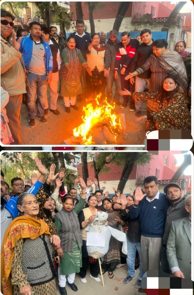 चंडीगढ़ 30 नवंबर 25- अनिल शारदा /पंकज राजपूत प्रस्तुति—आज सेक्टर 38 में प्रशासन के 4 अधिकारों ने जो रिहैबिलिटेशन ओर ट्रेनामेंट्स को लेकर जो पॉलिसी बनाई है। उसके विरोध में एक मीटिंग हुई। सेक्टर 38 के लोगों ने बताया 1985 में प्रशासन ने इनकी कीमतें 16000 रखी थी। गरीबी हालातों के कारण कुछ लोगों ने मकानों के पैसे जमा करवा दिए। अब 4 अधिकारियों की कमेटी जो नीति बना रही है। जिसका पता अखबारों के माध्यम से पता चला। अब इनकी आज की कीमत दुबारा रखी जाएगी । तो इसका विरोध है। प्रशाशन का पुतला कमलेश बनारसी दास पूर्व मेयर ने दर्जनों स्थानीय प्रभावित परिवारों के साथ मिलकर जलाया और प्रशासन की इस कार्यवाही की निंदा करते हुए नारेबाजी की। इस मौके पर अनेकों के साथ सीनियर आजीवन सदस्य सिपहसालार विक्टर सिद्धू ने भी पुतला फूंक विरोध प्रदर्शन में हिस्सा लिया।।
