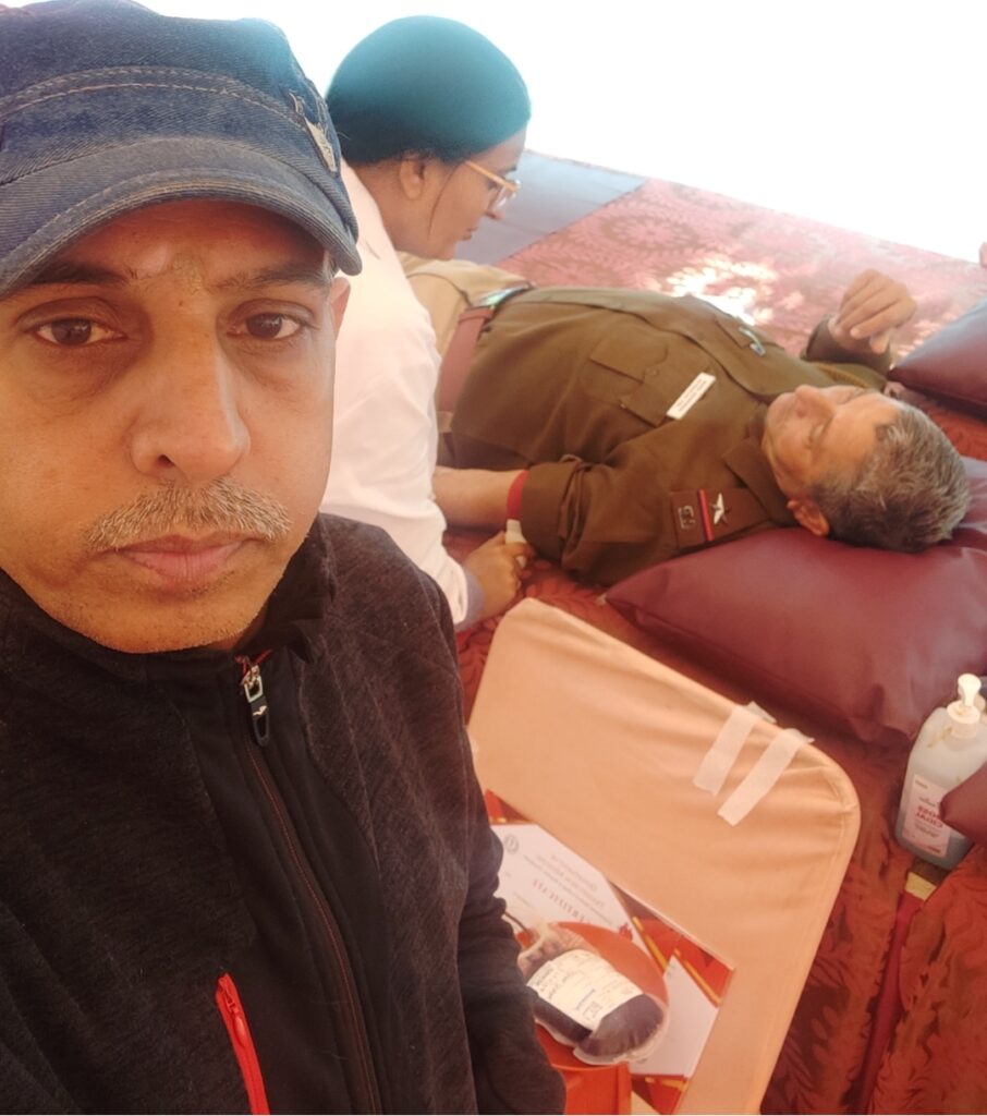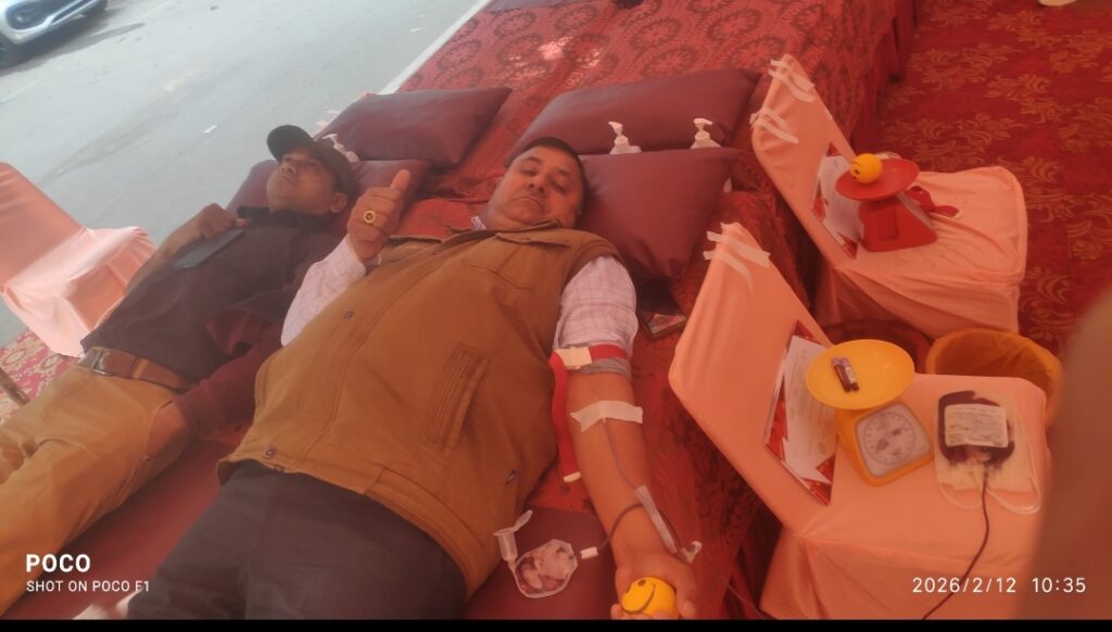 चंडीगढ़ 12 फरवरी 2026 अनिल शारदा हरीश शर्मा रक्षत शर्मा—-आज सेक्टर 9 डी स्थित चंडीगढ़ पुलिस मुख्यालय की जन मार्ग पर स्थित पार्किंग प्रांगण में पुलवामा के अमर शहीदों की स्मृति में एक स्वैच्छिक रक्तदान शिविर आयोजित किया।। उक्त शिविर में चंडीगढ़ पुलिस के जवानों, स्टेट लीगल सर्विस अथॉरिटी और चीफ इंजीनियरिंग डिपार्टमेंट सहित एजुकेशन डिपार्मेंट चंडीगढ़ और युटी सचिवालय चंडीगढ़ सहित चंडीगढ़ हाउसिंग बोर्ड और अनेकों राहगीरों ने स्वैच्छिक रक्तदान किया। चंडीगढ़ पुलिस के विजिलेंस विभाग के एएसआई पवन कुमार डिंडा स्टेट लीगल सर्विस अथॉरिटी के माननीय जज साहब के गनमैन सुनील कुमार कांस्टेबल ने भी रक्तदान किया। पवन कुमार ढिंडा ने बताया कि वह चौथी बार रक्तदान कर रहे हैं। और वह हमेशा ही ऐसे ही स्वैच्छिक रक्तदान करते रहेंगे। इस मौके पर एएसआई जसविंदर सिंह ने भी स्वैच्छिक रक्तदान किया। समाज सेवक और कलमकार आरके शर्मा “शर्मा जी” ने हमेशा की तरह अनेकों लोगों का मार्गदर्शन करते हुए सब को प्रोत्साहित करके स्वैच्छिक रक्तदान करवाया।।