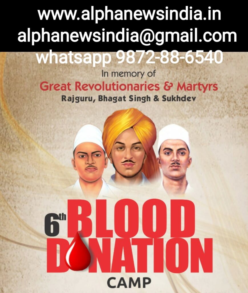 चंडीगढ़ रविवार 22 मार्च 2026 आरके विक्रमा शर्मा अनिल शारदा —– अंग्रेजों की गुलामी की त्रासदी से आजादी पाने के लिए भारत माता के वीर देशभक्त भारतीयों ने कुर्बानियां दी हैं। और हंसते-हंसते स्वतंत्रता के लिए हंसते-हंसते फांसी के रसों पर झूल गए हैं। देशभक्ति का पर्याय बलिदानी सदा अमर रहेंगे। भला इन कुर्बानियों को कौन भूल सकता है,, नेताजी सुभाष चंद्र बोस रानी लक्ष्मीबाई तात्या टोपे राजगुरु सुखदेव भगतसिंह बाला साहेब बंकिम चन्द्र चंद्रशेखर तिवारी आजाद खुदीराम बोस लाला लाजपत राय और न जाने कितने करोड़ों भारतीयों ने इस देश को हिंसक जालिमों आततायियों बलात्कारी हत्यारों के हाथों से बचाए रखने के लिए अपनी भारत माता के लिए प्राण तक न्योछावर किए हैं। पंजाब में भी आजादी पाने के मतवालों ने हंसते-हंसते अपनी बलिदान गाथाएं लिखी हैं। भगत सिंह राजगुरु सुखदेव की तिकड़ी लाल पाल बाल की तरह खूब मशहूर है। कल सोमवार जिला कोर्ट चंडीगढ़ में भगत सिंह के 95वें बलिदान दिवस को समर्पित एक रक्तदान शिविर आयोजित किया जाएगा। आयोजक राजेश शर्मा एडवोकेट ने अनिल शारदा अल्फा न्यूज़ इंडिया को बताया कि हरसाल की तरह 23 मार्च को बलिदान दिवस को समर्पित छठा स्वैच्छिक रक्तदान शिविर 9:00 बजे से बाद दोपहर 2:00 बजे तक सेक्टर 43 स्थित डिस्ट्रिक्ट कोर्ट में आयोजित किया जाएगा। उक्त स्वैच्छिक रक्तदान शिविर में कोई भी रक्तदाता स्वैच्छिक रक्तदान कर सकता है।।